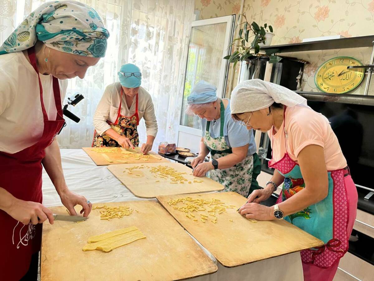 Автокалада яшәүче Мәдинә ханым Мөхәммәтҗанова бер төркем волонтер апалар белән хәрбиләр өчен чәкчәк әзерли. Күңел җылысын кушып әзерләгән әлеге татлы ризыкны алар алгы сызыктагы Ватан сакчыларына җибәрергә тели.