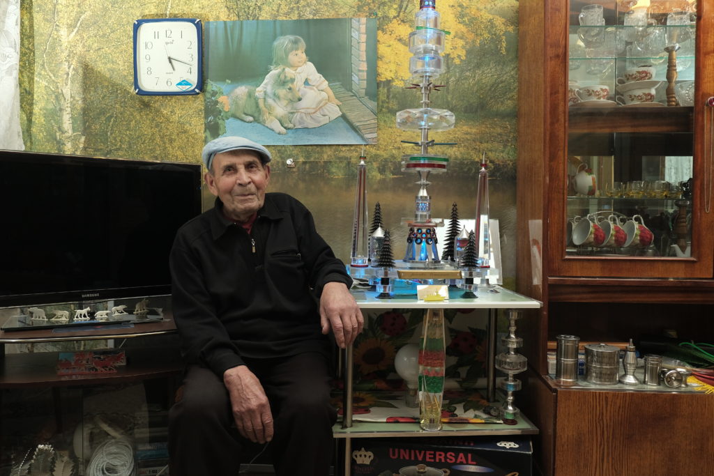 Аның фатирында тутыкмый торган металлдан эшләнгән Останкино башнясы, тагын тимердән, органик пыяладан эшләнгән әллә нинди сыннар, йорт кирәк-яраклары бар. “Чертеж гына бир, любой нәрсәне эшлим”, – дип елмаеп тора. Чын мәгънәсендә белемсез “профессор” ул, һәр эшләнмәсенә иң оста ювелир кулы тигән кебек.