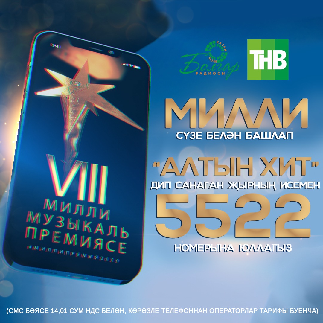 “Болгар радиосы” VIII Милли музыкаль премиясе башланганчы без ай дәвамында радиотыңлаучылардан “Кайсы җыр сезнең өчен алтын хит булып санала?” дигән сорауга СМС хәбәрләр кабул итәчәк.