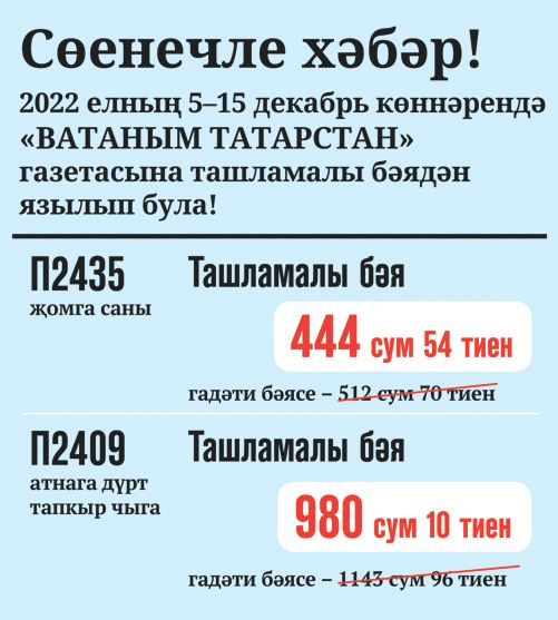 «Ватаным Татарстан»га ташламалы бәядән язылып була