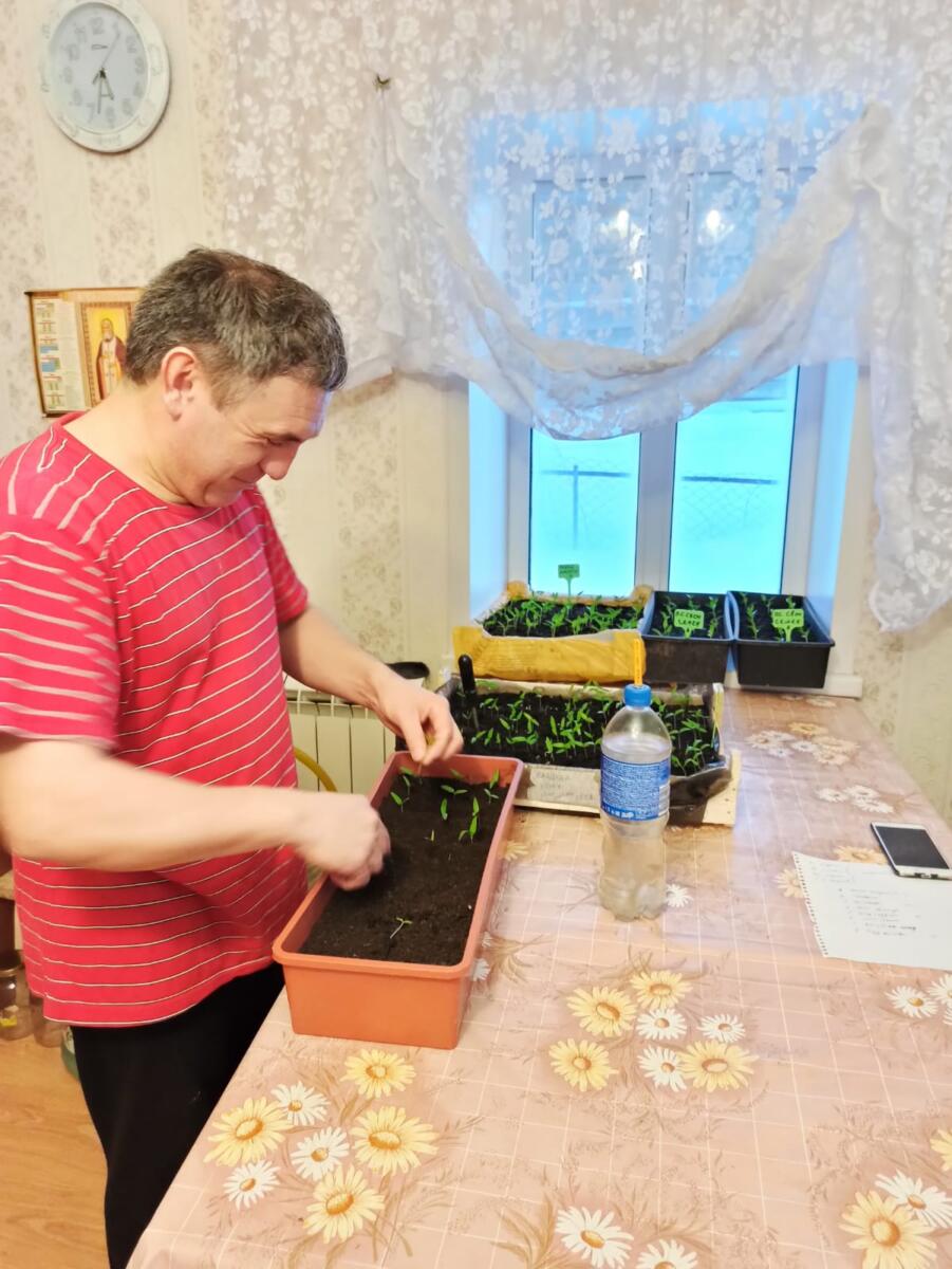 Тәрәзә төбе үсентеләр белән тулган. Борыч, кәбестә чәчкән. Помидор утыртырга март ахыры – апрель башын көтә. Аны өйдә ике айдан артык үстерергә киңәш итми. Үсентеләрен ел саен ала торган клиентлары бар икән. Лалә, гладиолус суганчаларын да сата.