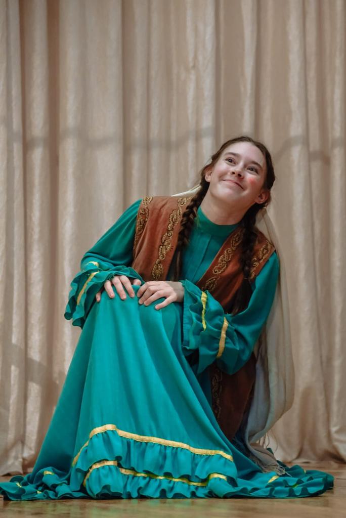 – Үзебезнең гимназиядәге «Хәят» театр студиясенә 7 нче ел йөрим. Аны яшәткәне өчен директорыбыз Зөммәрәт Шамил кызы Нәгыймовага бик зур рәхмәт! Укытучыбыз – Галиәсгар Камал театры артисты, Татарстанның атказанган артисты Алмаз абый Сабирҗанов. Дәресләребез бик күңелле уза. Без төрле уеннар уйныйбыз, тренинглар узабыз. Һәр елны бер яңа спектакль куябыз. Һәм һәр елны диярлек шәһәр буенча да, республика конкурсларында да гран-при алып киләбез. Быел без Габдрахман Ильясиның «Бичара кыз» әсәрен сәхнәләштердек. Бу – татар дөньясында иң беренче куелган әсәр икән. Спектакльдә мин төп герой Бичара кыз – Маһитапны уйнадым. Шул роль белән «Сәйяр» шәһәр фестивалендә «Иң яхшы хатын-кыз роле» номинациясендә җиңдем. Спектакль 100 мең сум премия белән бүләкләнде.