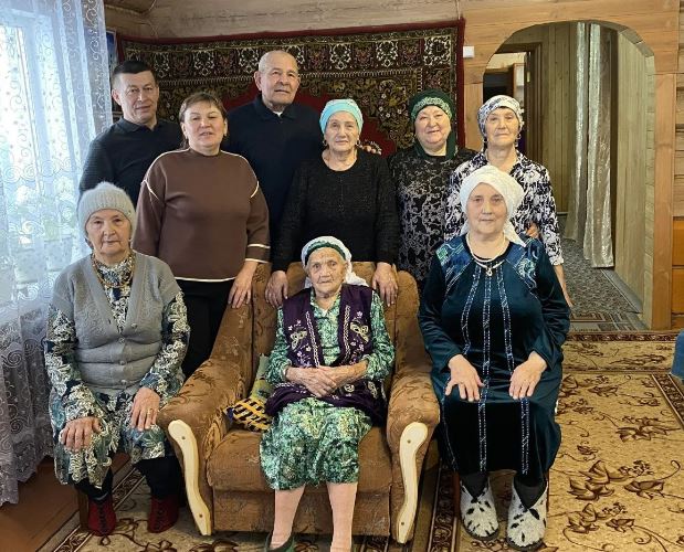 100 яшенә кадәр әни үзе дә бөтенебезгә кунакка йөрде. Алты баласының бишесе исән, Фәрдиябез генә авырып үлде. Калганнарыбыз Биектау районында гына. 9 оныгы, 14 оныкчыгы бар. Әле күптән түгел 102 яшьлегенә бөтенебез җыйналып котладык. Райондагы иң өлкән кешеләрнең берсе буларак та, куйган хезмәтләрен истә тотып та, районнан да килеп котлап, хәлләрен белешеп торалар.