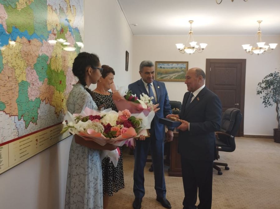 Бүген Татарстан Республикасы Президенты каршындагы Татар телен һәм Татарстан Республикасында яшәүче халыклар вәкилләренең туган телләрен саклау, үстерү мәсьәләләре комиссиясе рәисе Марат Әхмәтов, республика мәгариф һәм фән министры Илсур Һадиуллин Әдилә һәм аңың остазы Энҗе Васыйл кызы белән очрашты.