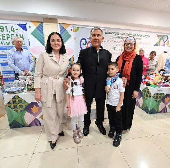 Фотоларда Татарстан Рәисенең эшкуарларның товарлары белән танышуын, җыенда катнашучылар белән аралашуын күрергә була.