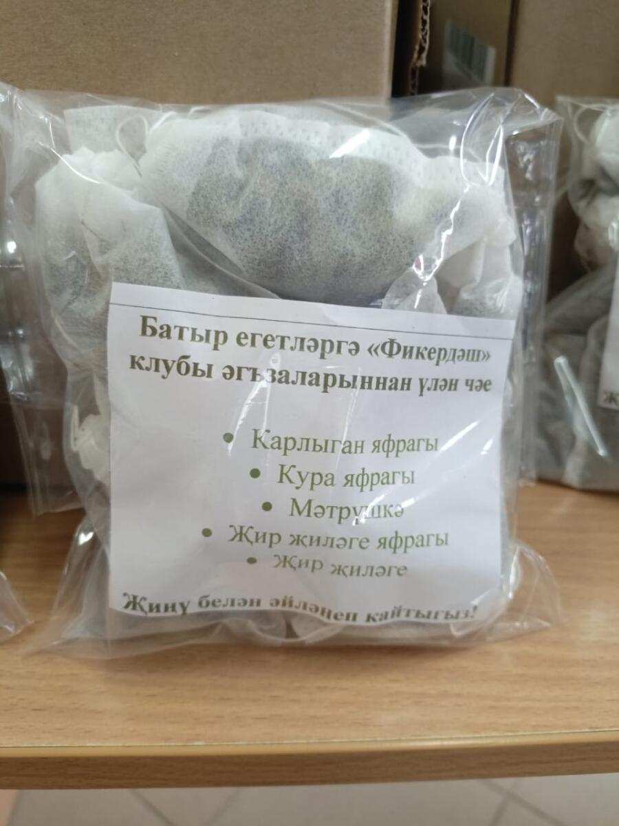 Балтач районында мөмкинлекләре чикле кешеләр өчен оештырылган "Фикердәшләр" клубына йөрүчеләр СВОдагы якташларына үз куллары белән әнә шуның кадәр үлән чәе әзерләгән.