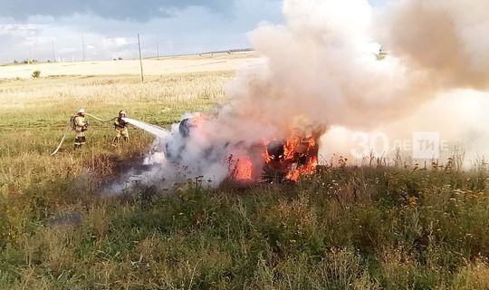 Татарстанда «Мерседес» тулысынча янып беткән (ФОТО)