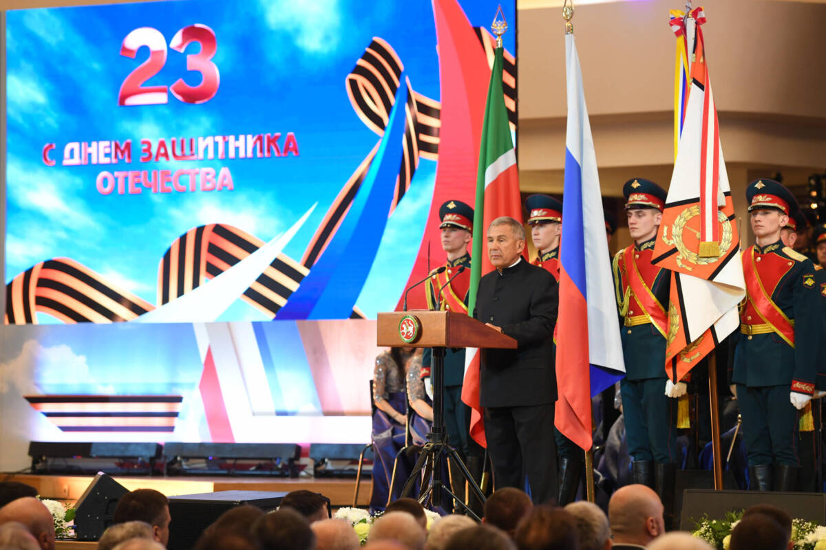 Рөстәм Миңнеханов: Ватанны саклаучылар көне бәйрәме Ватанга тугрылык һәм хезмәт итү символына әверелде