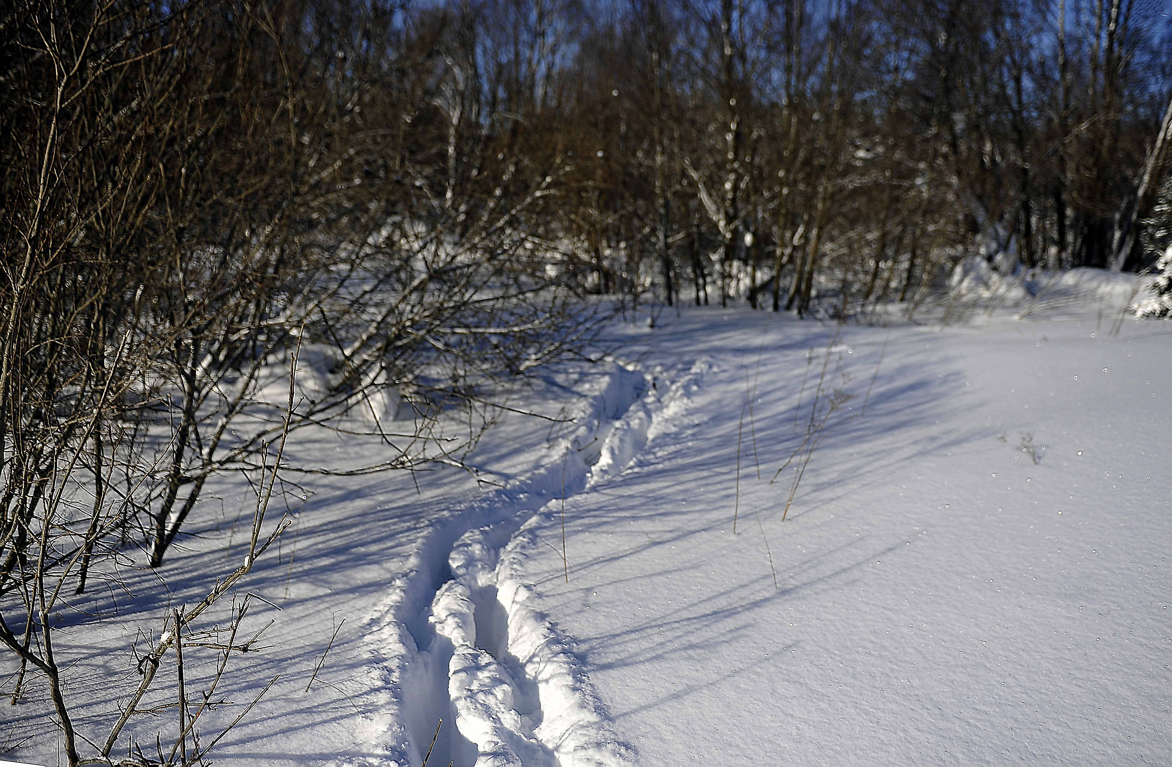 – Менә күрәсезме, юлдан күптән түгел бер төлке, бер куян узып киткән. Эзләрне аеру кыен түгел. Төлке ара калдырмыйча атлап бара, куянныкы әллә каян аерылып тора. Ул ике аягы белән сикереп бара. Авырлык килгәндә, бер-берсенә булышу дигән нәрсә дә хас урман җанварларына. Менә бу урыннан өч поши үтеп киткән. Башта берсе юлны ера, аннан калганнары шуннан атлый, – ди ул.