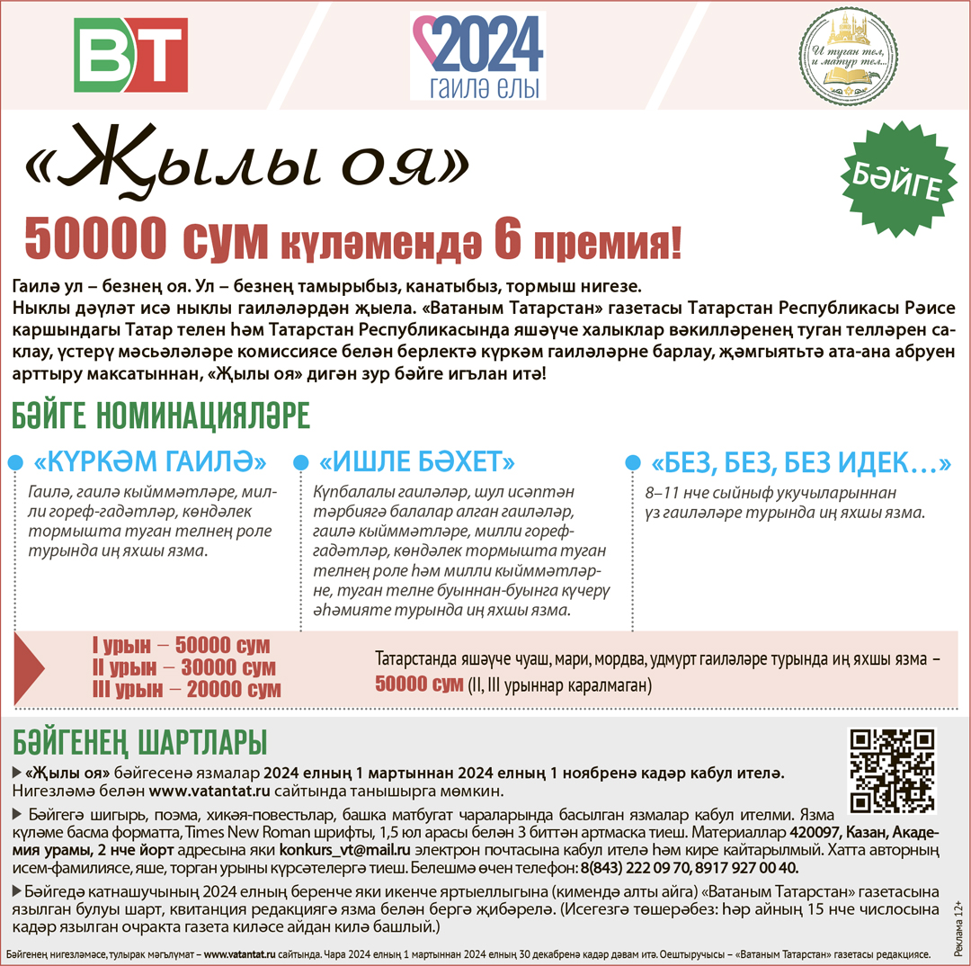 «Ватаным Татарстан» газетасы Татарстан Республикасы Рәисе каршындагы Татар телен һәм Татарстан Республикасында яшәүче халыклар вәкилләренең туган телләрен саклау, үстерү мәсьәләләре комиссиясе белән берлектә күркәм гаиләләрне барлау, җәмгыятьтә ата-ана абруен арттыру максатыннан, «Җылы оя» дигән зур бәйге игълан иткән иде. Аңа язмалар кабул итү дәвам итә.
